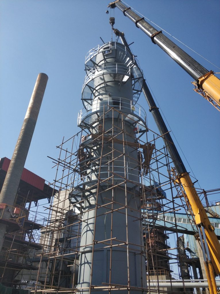 SO?被漿液吸收,凈化后的煙氣經(jīng)過(guò)除霧器除去液滴,然后通過(guò)煙囪排放。